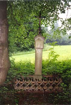 Auch bei diesem Kreuz ist bekannt, weshalb es hier steht. Kurz nach dem Krieg war an dieser Stelle eine Sandgrube. Ludwig Streck, wurde hier beim Sandschaufeln verschüttet, sodaß nur noch die Hand aus dem Sand ragte. Zufällig wurde er entdeckt und überlebte.