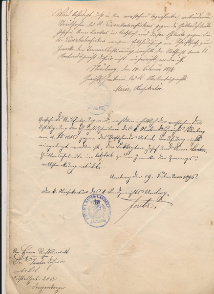 Im Nachgang erhoben sie Klage wegen Zahlung einer Entschädigung, da eines ihrer Grundstücke durch den Bahnkörper durchtrennt wurde. Aber auch sie wurden im Gegenzug von der Eisenbahn verklagt.