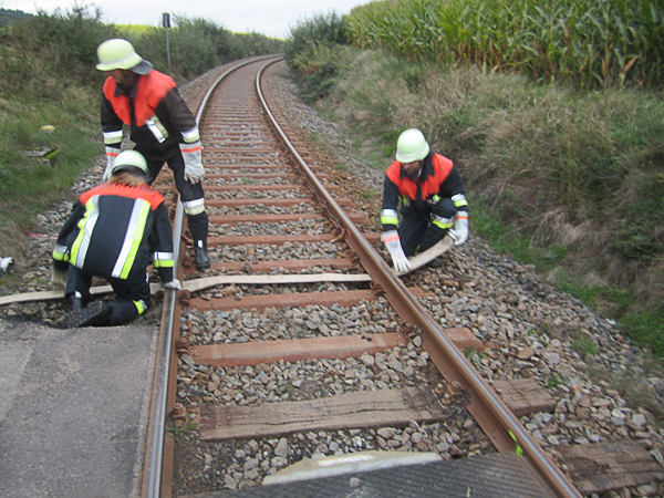 Eine zweite ca. 460 m lange B-Leitung wurde zusätzlich vom " Noglerweiher " nahe dem Schwarzholz zum Brandobjekt verlegt. Die Herausforderung dabei war, die Schlauchleitung quer zu den Bahngleisen zu verlegen. Dazu wäre geplant gewesen, einen Sachverständigen der zuständigen Bahnverwaltung hinzuzuziehen, der allerdings nicht erschienen ist.
