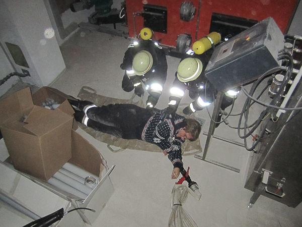 Insgesamt 12 Atemschutzträger suchten die 3 Verletzten und brachten sie ins Freie zur weiteren Behandlung. Kurz darauf stellte sich heraus, dass noch ein Kind vermisst wurde und die Suche begann von Neuem, bis auch dieses geborgen werden konnte. Dazu haben sich vier Personen der örtlichen Wehr als „Verletzte“ bzw. „Vermisste“ zur Verfügung gestellt.
