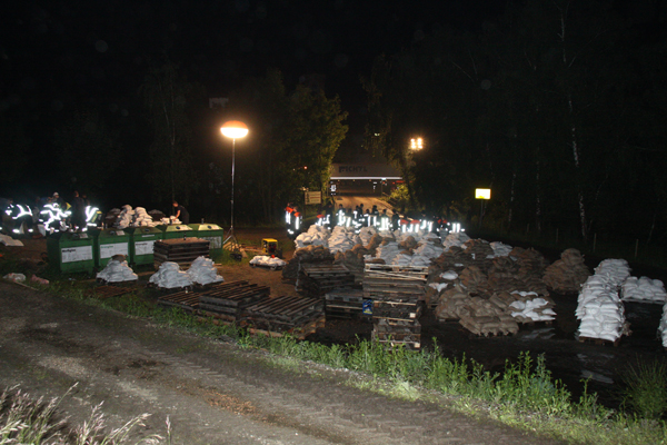 Bis morgens um 8.30 Uhr wurde der Damm bei Thundorf von den oben genannten und weiteren Einsatzkräften mit den gefüllten und bereitgestellten Sandsäcken erhöht. Die Einsatzarbeiten gestalteten sie entsprechend schwierig, da während der gesamten Nacht bei nur notdürftiger Beleuchtung durch die Notstromaggregate durchgearbeitet werden musste.