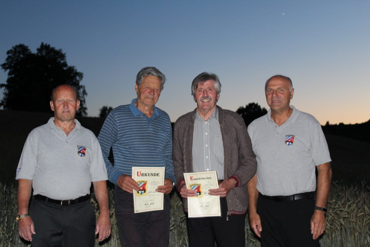 Die Ehrenmitglieder Konrad Ederer und Josef Mühlbauer mit den Vorständen Josef Meier und Anton Gruber
