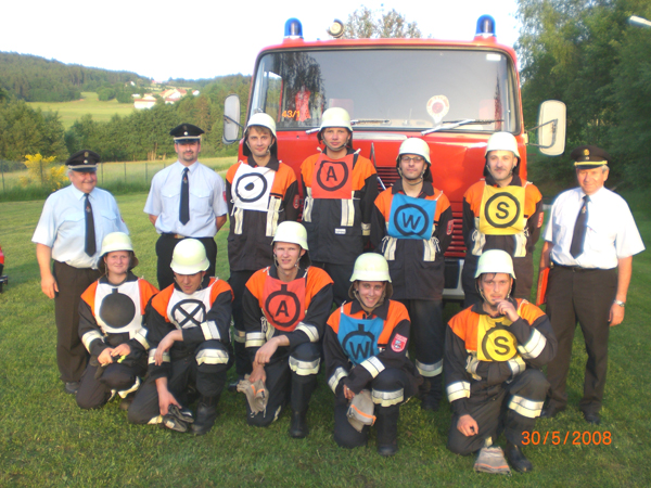 Zwei Löschgruppen der Freiwilligen Feuerwehr Katzbach stellten sich erneut zur Leistungsprüfung. Unter den gestrengen Augen der 3 Schiedsrichter KBI Anton Ruhland, KBM Michael Gruber und dem Kommandanten der Wehr Christian Bauer absolvierten am Freitag den 30. 5. 08 abends die Feuerwehrmänner die Prüfung. Sie bestanden die Prüfung nach den neuen Richtlinien mit respektablem Erfolg und KBI Ruhland begrüßte, dass in der Katzbacher Wehr die Ausbildung von Jahr zu Jahr kontinuierlich fortgesetzt wird. Die Vorbereitung der Damen und Herren übernahmen die beiden Kommandanten Christian Bauer und Michael Meier. KBM Gruber bat die Feuerwehrdienstleistenden, auch wenn sie die Endstufe der Abzeichen erreicht haben den Dienst am Nächsten weiterzumachen und der Feuerwehr die Treue zu halten. Mit dem Aufruf „Tragt die Abzeichen mit Stolz“ übereichte KBI Ruhland am Ende der Prüfung die Abzeichen an Bauer Juliane Stufe 3, Feiner Claus Stufe 3, Gruber Matthias Stufe 4, Gruber Christoph Stufe 4, Bücherl Michael Stufe 6, Deml Thomas Stufe 6, Deml Christian Stufe 4, Feiner Christina Stufe 3, Fischer Kathrin Stufe 4, Wagner Matthias Stufe 6, Streck Josef Stufe 6, Feiner Stefan Stufe 6.